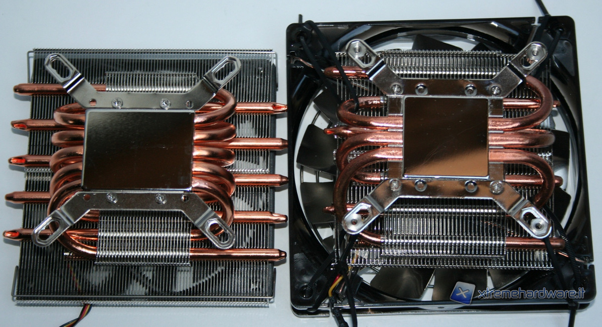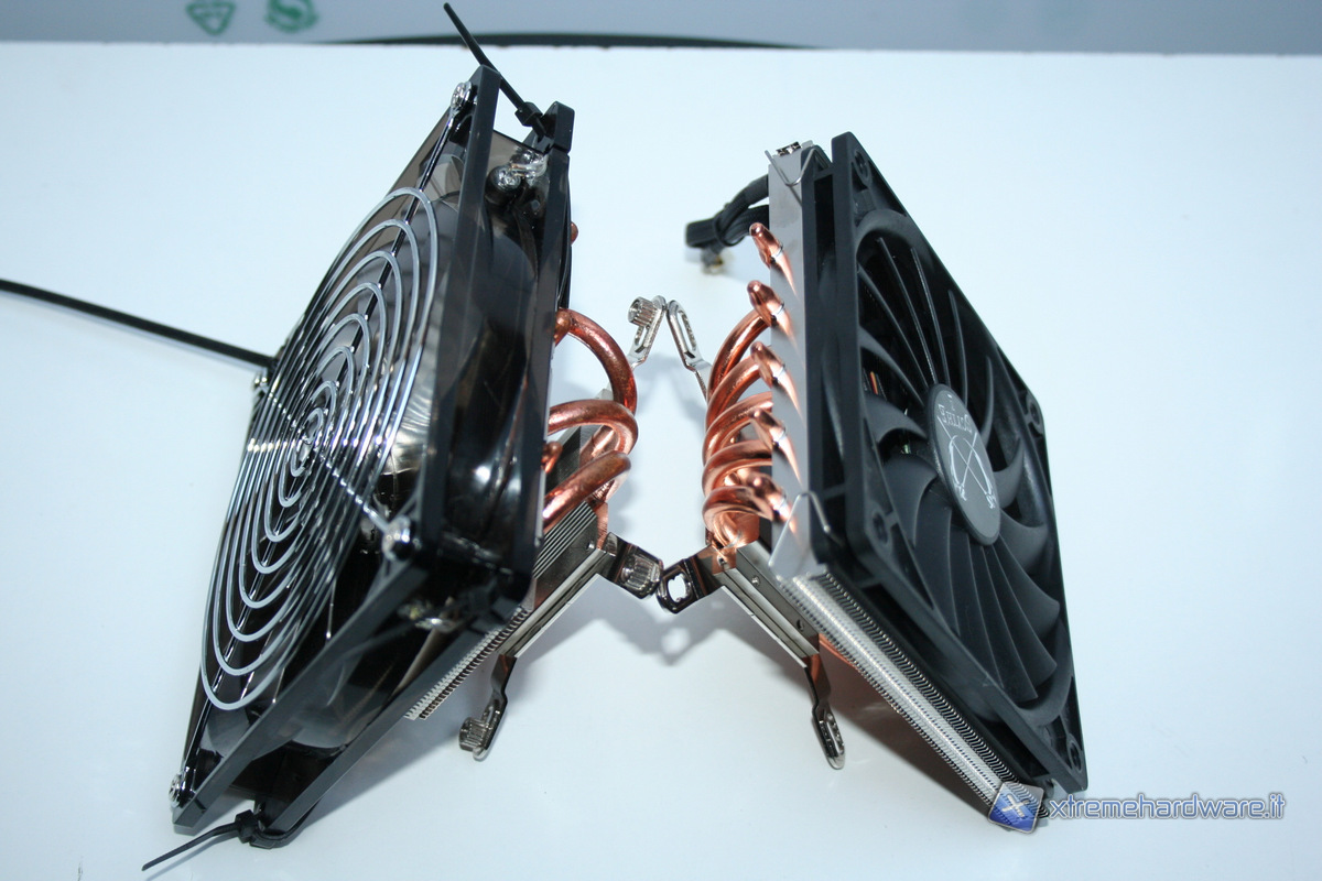 Ora invece vi mostreremo i due dissipatori a confronto. Come potete vedere sono moltissime le somiglianze strutturali ed il piccolo kozuti sembra che sia stato semplicemente una versione depotenziata del Big Shuriken 2. Nelle seguenti foto il Kozuti è stato modificato eliminando la ventola inferiore da 80mm ed equipaggiandolo con una ventola da 140mm e 25mm di spessore.